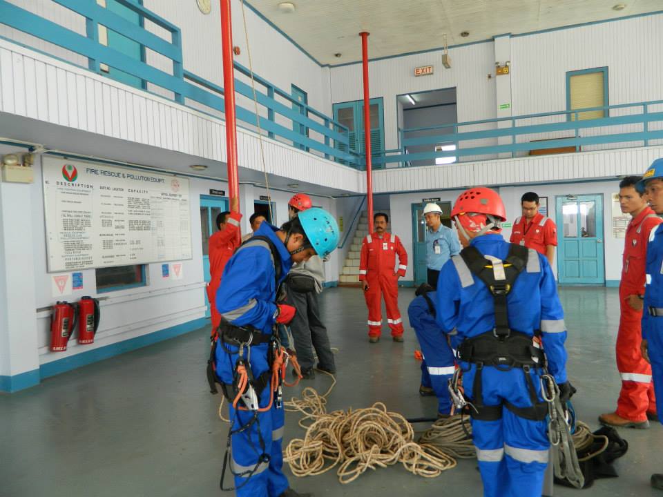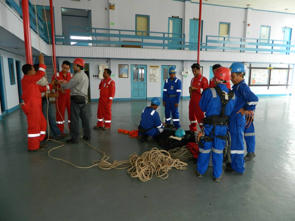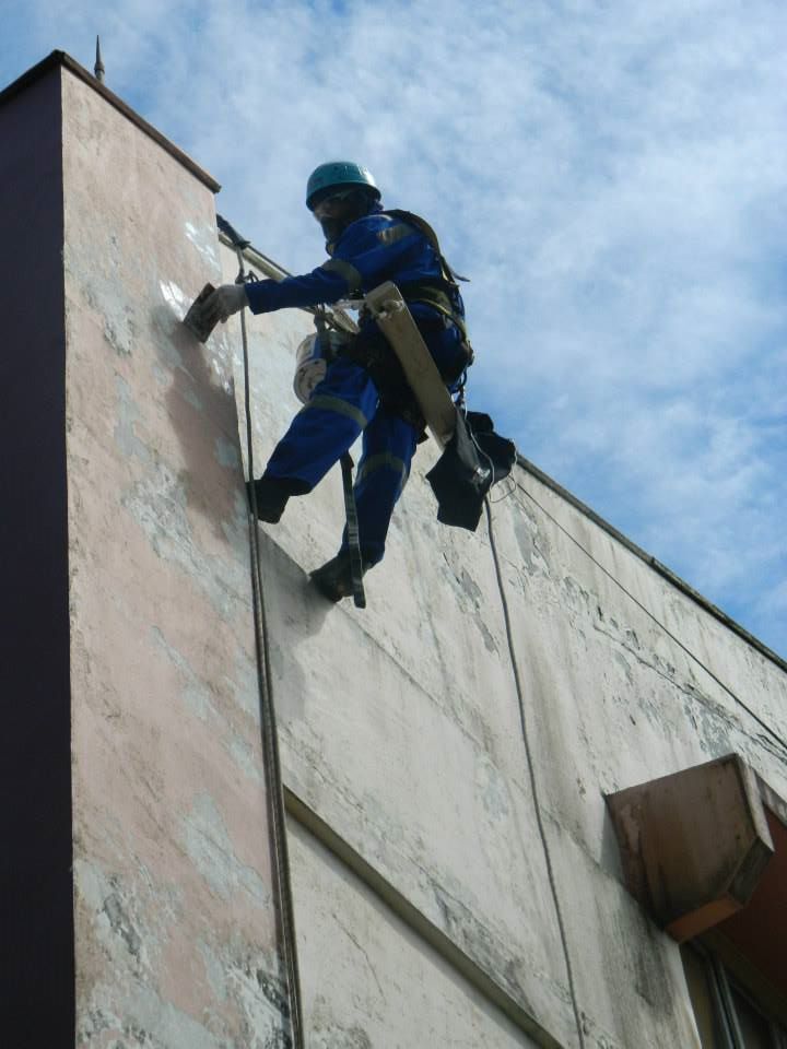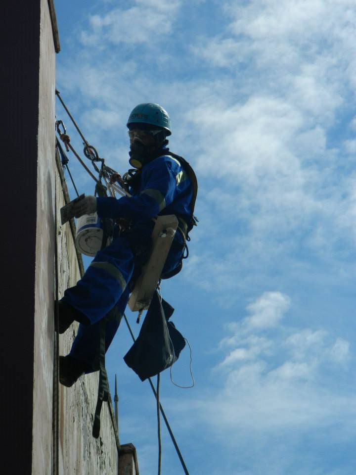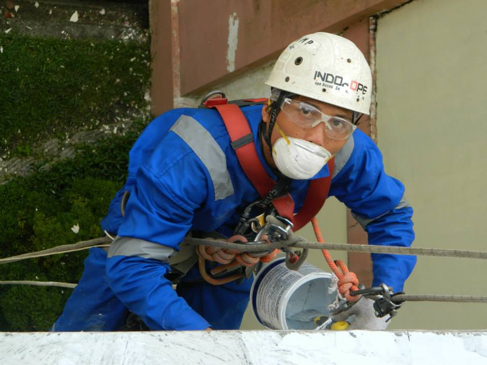 Painting project with rope access system in VICO office building, Muara Badak - East Kalimantan. The building never been painted since its build many years ago. Actually, at the first - VICO management want to use scaffolding to do this painting project - and feel happy to use rope access after we presented that system.